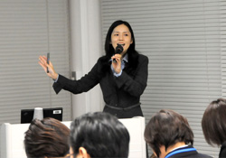 講師にお迎えしたのは、『20代・ハッピー☆パラサイトの消費の力』『草食系「お嬢マン」が日本を変える』などの著書で知られる、マーケティングライターの牛窪 恵氏。講演では、氏のマーケティング分析が詳細に語られ、ウエディングマーケットに眠る新たな可能性を探る内容となった。